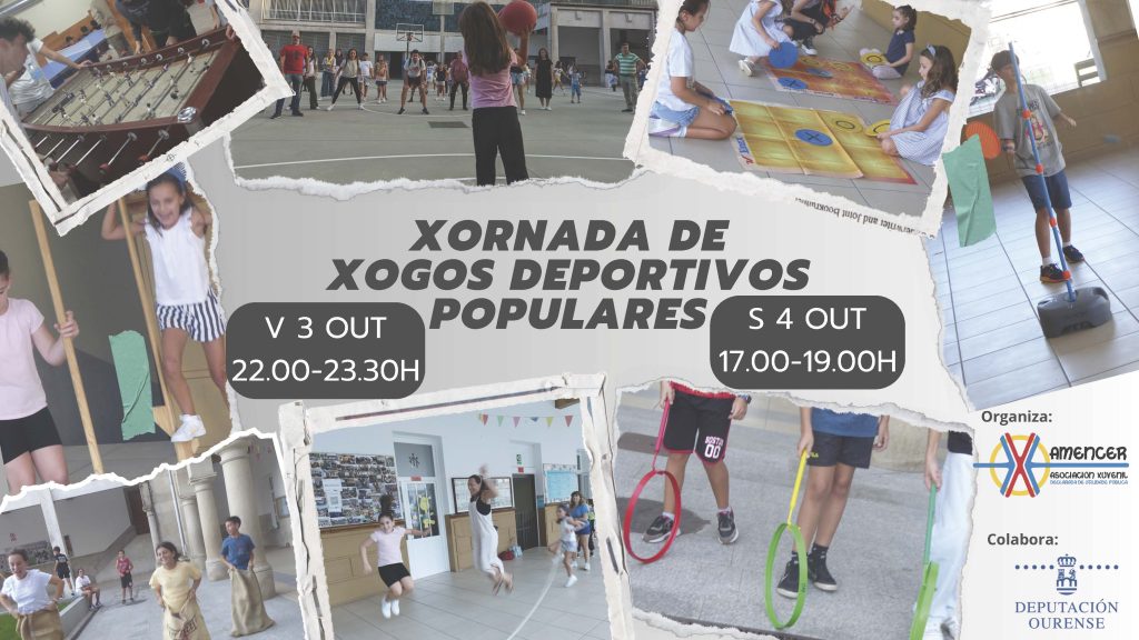 O venres, 3 de outubro, e o sábado 4, levarase a cabo unha xornada de xogos deportivos tradicionais nas instalacións do colexio Salesiano de Ourense aberta a toda a cidadanía que queira participar, tanto grandes coma pequenos.